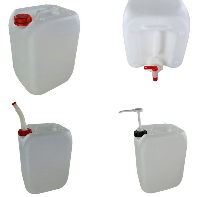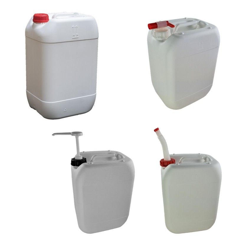 Envase Garrafa apilable de 12L en color blanco opaco, azul opaco o natural translúcido. La gama de jerricanes o garrafas apilables, fabricados de plástico polietileno, son ideales para guardar uno encima de otro. Son envases perfectos para envasar, almacenar, transportar y guardar prácticamente todo tipo de líquidos, incluso los productos más agresivos. Al cerrar de manera totalmente estanca, estar homologados para el transporte de mercancías peligrosas y tener el certificado alimentario (libre de BPA), pueden servir para cualquier sector: Alimentación, químicos, productos inflamables, cosmética, veterinaria, farmacia y un largo etcétera. Además, sirven para muchos usos diferentes,ya que se les puede incorporar varios accesorios como una manguera, un dosificador o un grifo. Además, con el tapón de inducción se pueden inducir para tener una mayor protección. Tienen una gran durabilidad. También disponible en la web la misma garrafa con accesorio de grifo, manguera o dosificador.